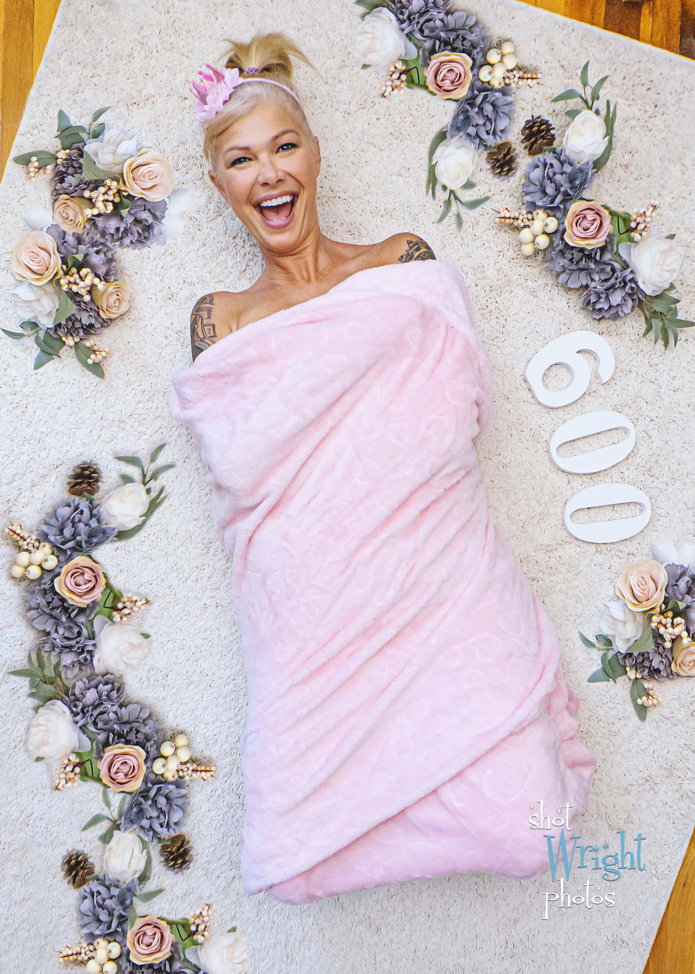 I had been wanting to do something fun and creative for this years big 5-0 and wanted to do a newborn style shoot. Of course, a naked older woman isn’t comedic and just looks like I’m trying to be sexy, if I was a guy - a dad bod nudie shoot is funny - I knew that wasn’t the route for me.